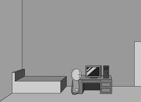 The third option lets the player go outside and the text "You breathe in the cold morning air. Somehow, you feel that today will be a nice day. Where will you go?" appears. The player can then choose from he following options: