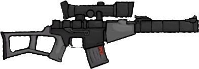 The VSS Vintorez is a Russian semi-automatic sniper rifle with an integral suppressor, derived from the AS Val. It appears in DISSENTER, used by 2BDamned to kill an A.T.P. soldat.